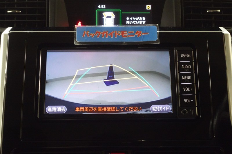 <バックガイドモニター>ハンドル操作に連動した予想進路図を確認しながら、より安全に駐車できます!補助装置になりますので、目視でもご確認ください。
