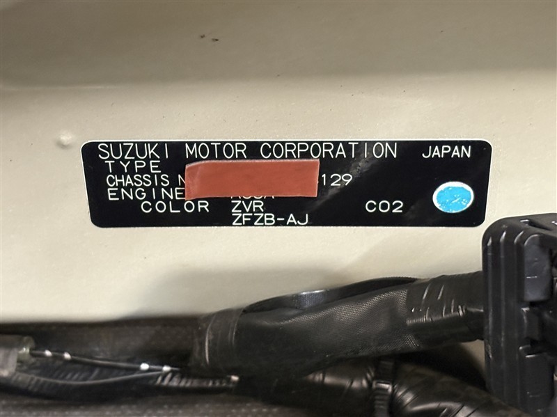 コーションプレートです。フレームナンバーやカラーコードなどが記載されています。