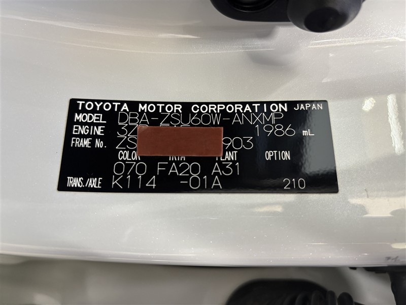 コーションプレートです。フレームナンバーやカラーコードなどが記載されています。