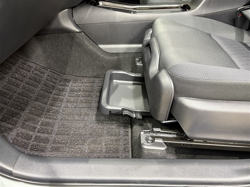 助手席シート下の収納スペースです。普段使わないものを収納しておけます。