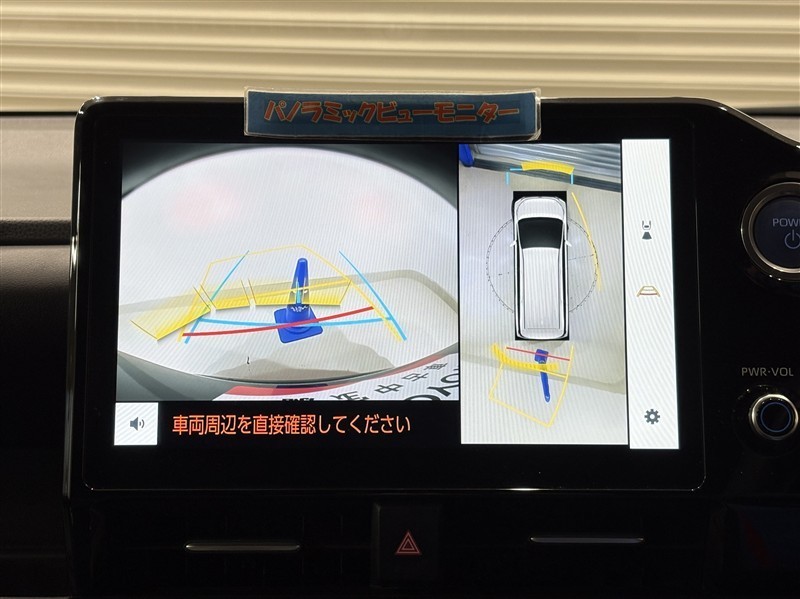 <パノラミックビューモニター>真上から車を見ているように表示されるので、運転席から見えないところも映し出されて確認でき、より安全に駐車できます!バックが苦手な人でも安心ですね♪目視での確認も忘れずに。