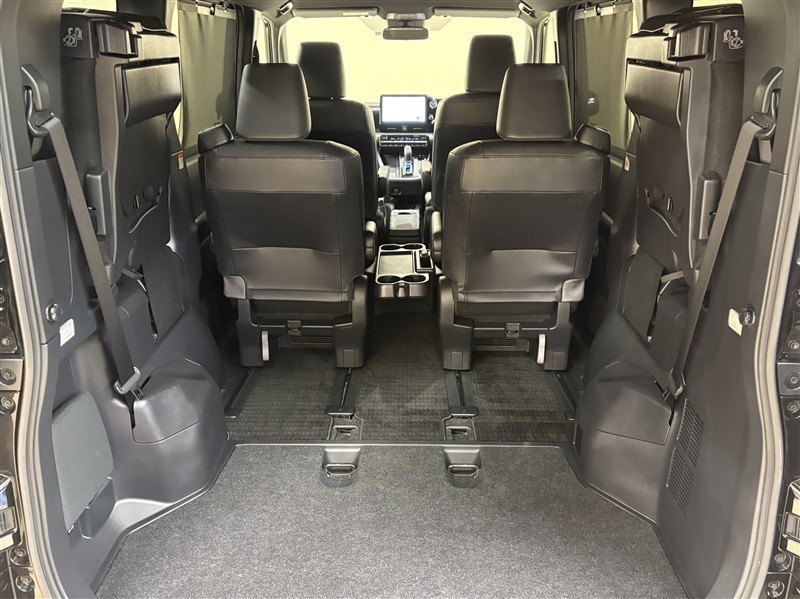 3列目が跳ね上げ式になっているので、跳ね上げて固定すれば広々とした空間が出現!大きな荷物も積めちゃいます。