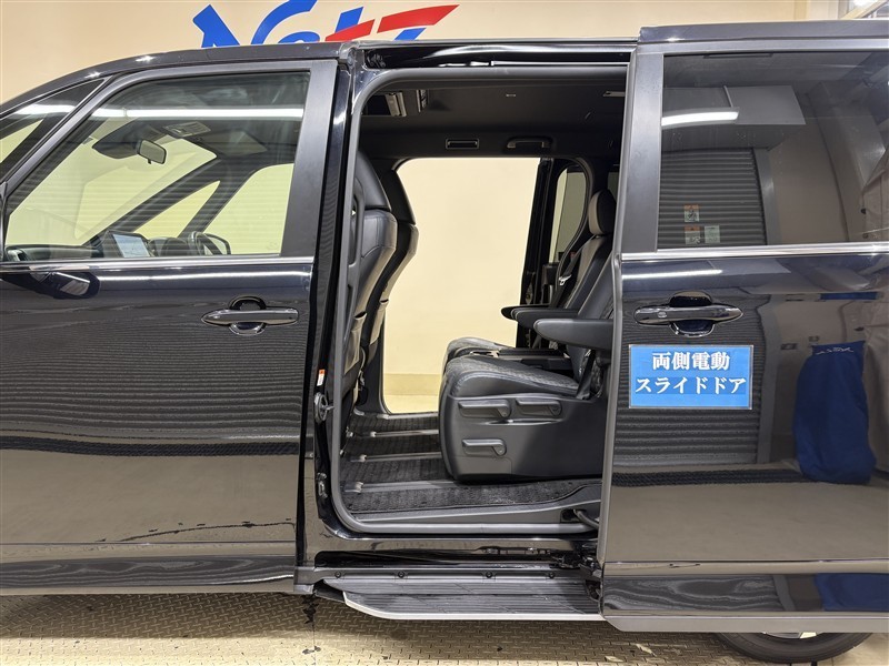 [両側電動スライドドア]スライドドアですので、狭いスペースでも、隣の車を気にせず開閉できます。狭い場所でもドアを十分に大きく開くことが出来るので乗り降りや荷物を載せるのに便利です。