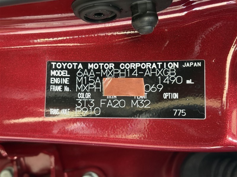 コーションプレートです。フレームナンバーやカラーコードなどが記載されています。