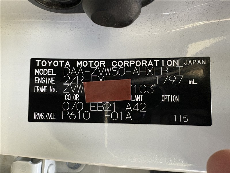 車両ナンバー: