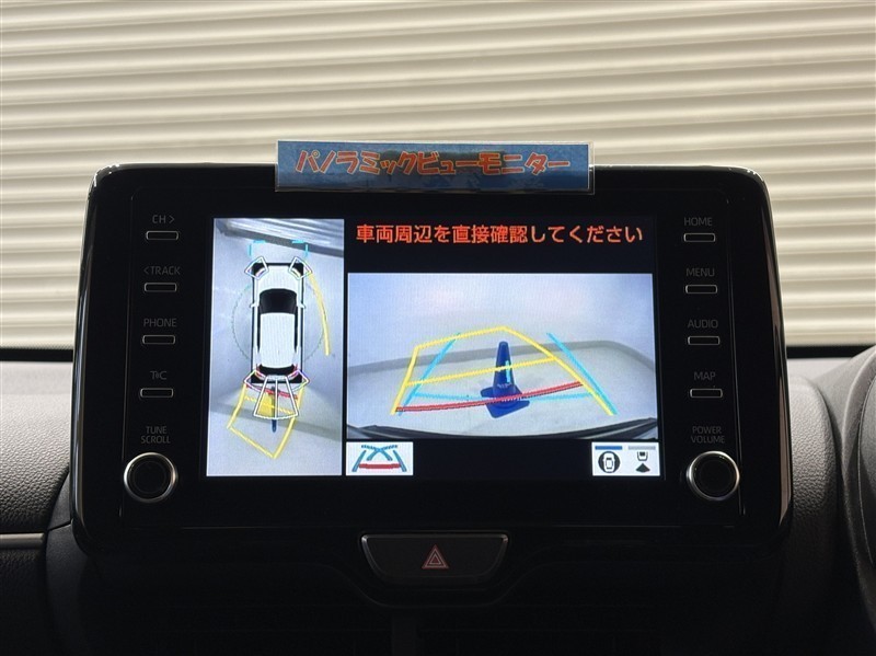 <パノラミックビューモニター>真上から車を見ているように表示されるので、運転席から見えないところも映し出されて確認でき、より安全に駐車できます!バックが苦手な人でも安心ですね♪目視での確認も忘れずに。