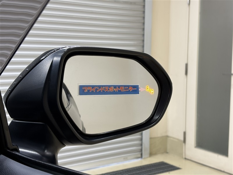 <ブラインドスポットモニター>死角になりやすい斜め後ろの車両や障害物を検知してドアミラー内のランプをオレンジに点灯し知らせてくれます。車線変更や駐車時に安心ですね♪