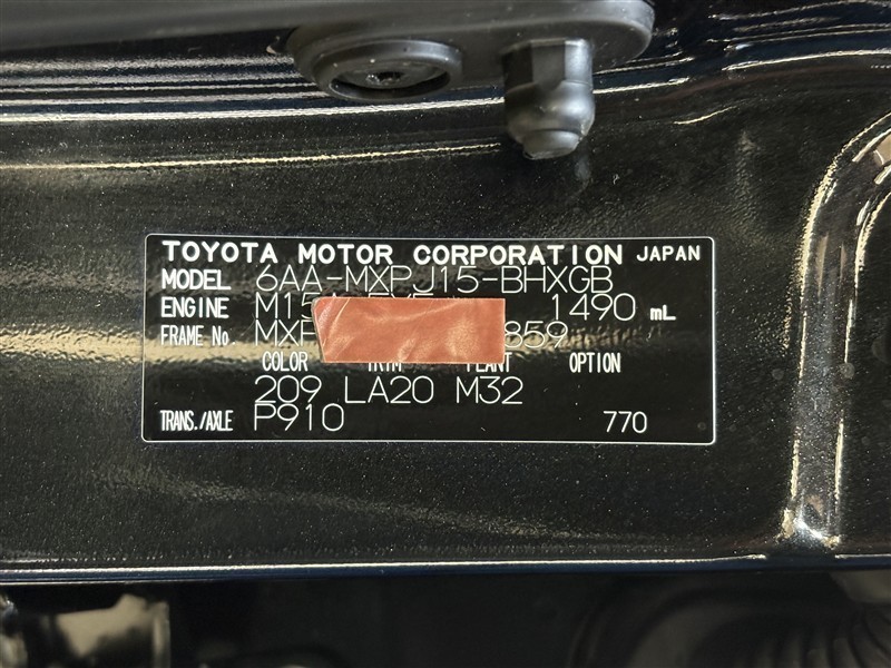 コーションプレートです。フレームナンバーやカラーコードなどが記載されています。