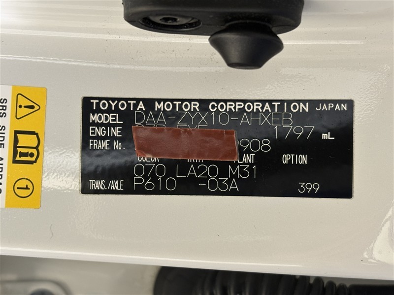 コーションプレートです。フレームナンバーやカラーコードなどが記載されています。