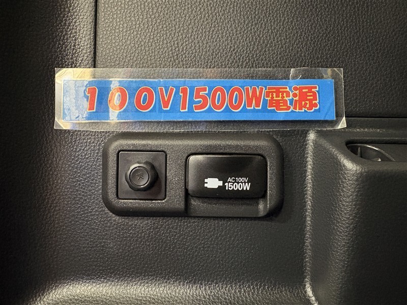 AC100V・1500Wコンセント付き。災害などの非常時に電力が必要な時、車両停止状態で電力を供給!お湯を沸かしたり電子レンジや炊飯器も使えます。