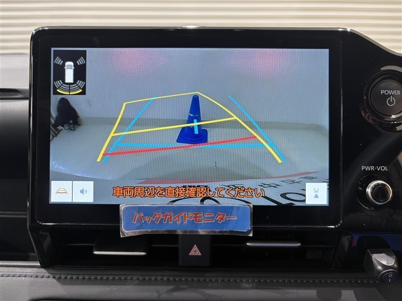 <バックガイドモニター>大画面なので大きく映り、ハンドル操作に連動した予想進路図を確認しながら、より安全に駐車できます!補助装置になりますので、目視でもご確認ください。
