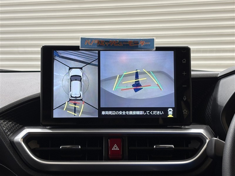 <パノラミックビューモニター>真上から車を見ているように表示されるので、運転席から見えないところも映し出されて確認でき、より安全に駐車できます!バックが苦手な人でも安心ですね♪目視での確認も忘れずに。