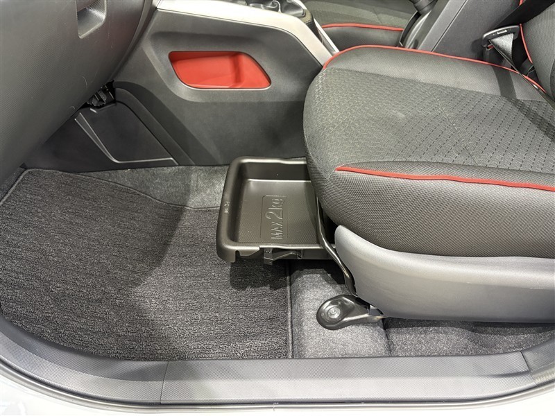 助手席シート下の収納スペースです。普段使わないものを収納しておけます。