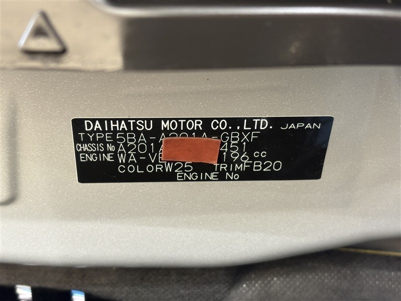 コーションプレートです。フレームナンバーやカラーコードなどが記載されています。