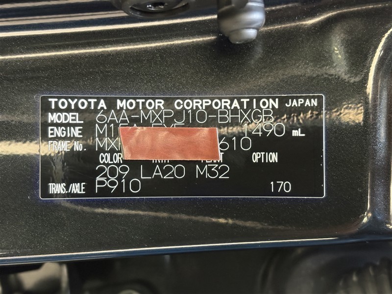 コーションプレートです。フレームナンバーやカラーコードなどが記載されています。