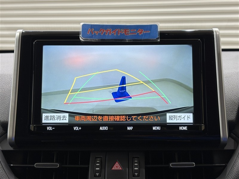 <バックガイドモニター>大画面なので大きく映り、ハンドル操作に連動した予想進路図を確認しながら、より安全に駐車できます!補助装置になりますので、目視でもご確認ください。