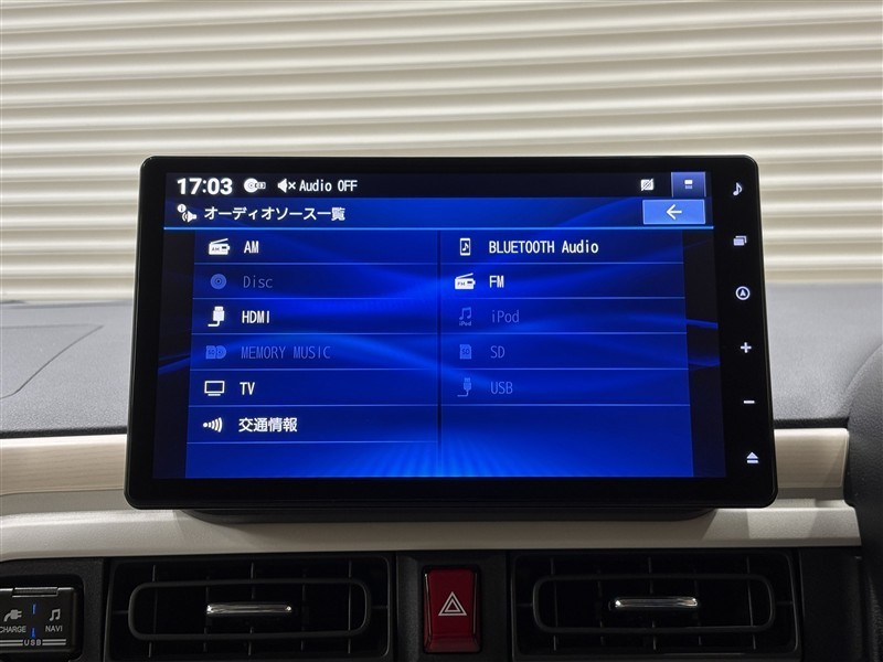 オーディオソース画面です。Bluetooth装備しているのでスマートフォンと接続すればスマートフォンに取り込んだ音楽などを聴いたりできます♪