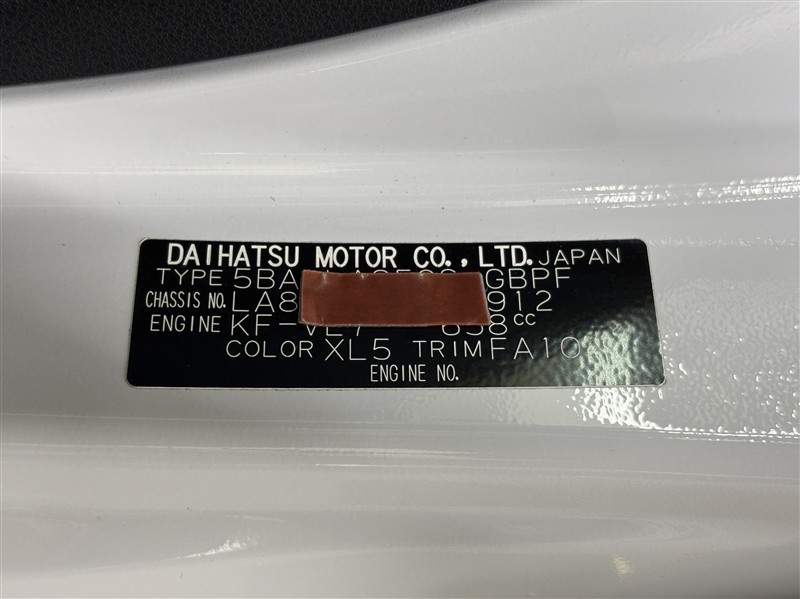 コーションプレートです。フレームナンバーやカラーコードなどが記載されています。