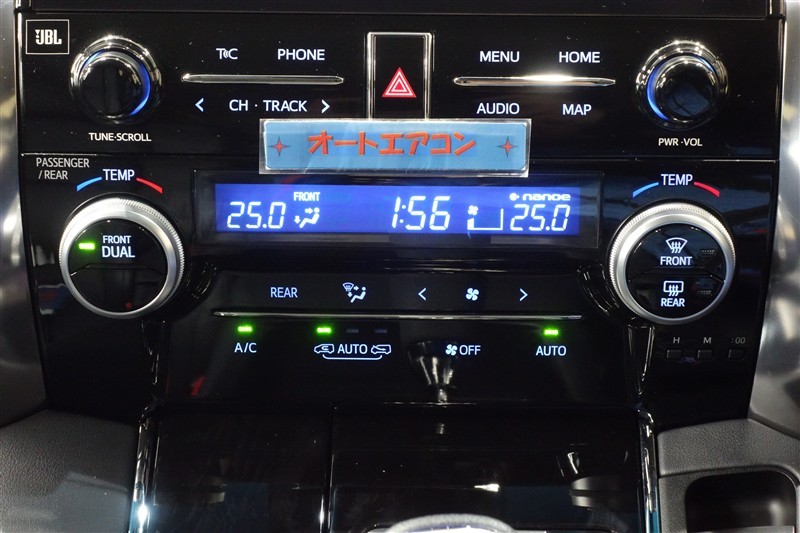 運転席と助手席で温度設定可能なデュアルモードオートエアコン装備。左右独立して自動で温度を調整して快適空間を保ちます。