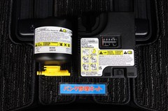 タイヤがパンクした時の応急修理キットです。スペアタイヤがないことにより軽量化でき環境にもいいです。