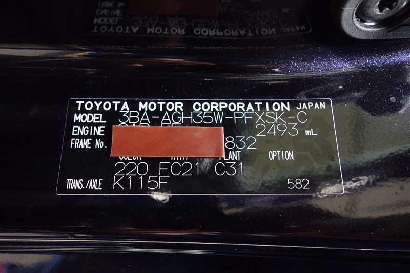 コーションプレートです。フレームナンバーやカラーコードなどが記載されています。