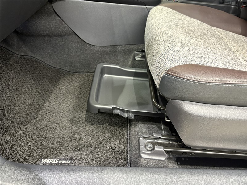 助手席シート下の収納スペースです。普段使わないものを収納しておけます。