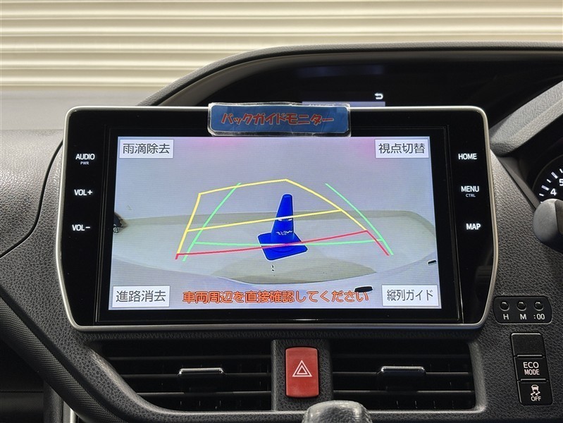 <バックガイドモニター>大画面なので大きく映り、ハンドル操作に連動した予想進路図を確認しながら、より安全に駐車できます!補助装置になりますので、目視でもご確認ください。