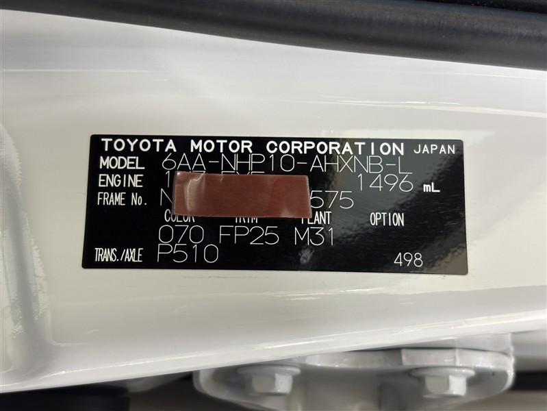 コーションプレートです。フレームナンバーやカラーコードなどが記載されています。