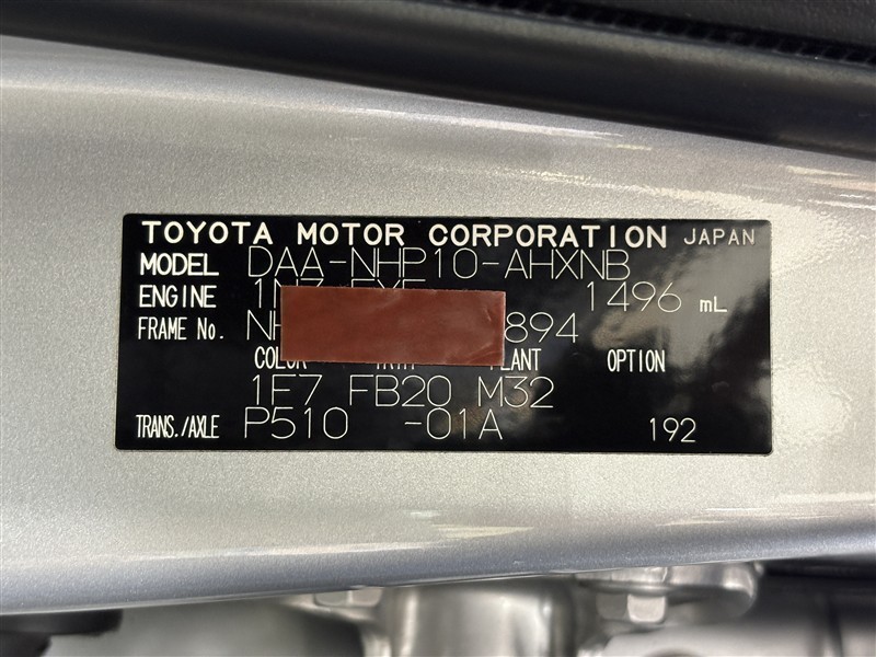 コーションプレートです。フレームナンバーやカラーコードなどが記載されています。