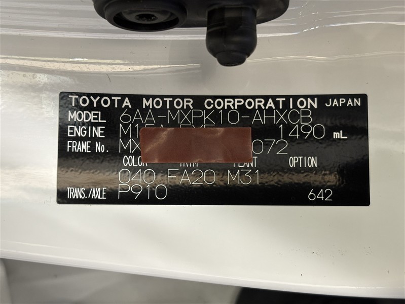 コーションプレートです。フレームナンバーやカラーコードなどが記載されています。