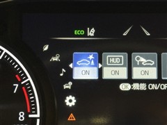 <ヘッドアップディスプレイ>運転席側フロントガラス下側にスピードなどを映し出し視線の移動を少なくします。