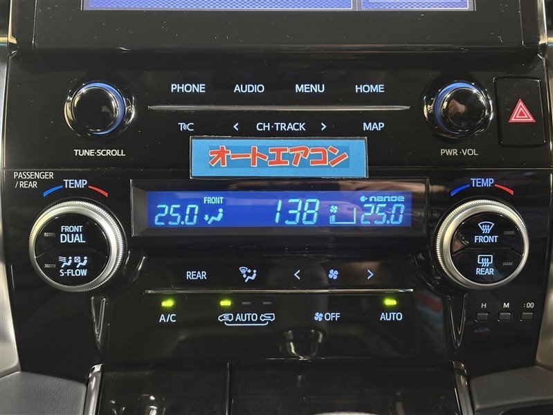 運転席と助手席で温度設定可能なデュアルモードオートエアコン装備。左右独立して自動で温度を調整して快適空間を保ちます。