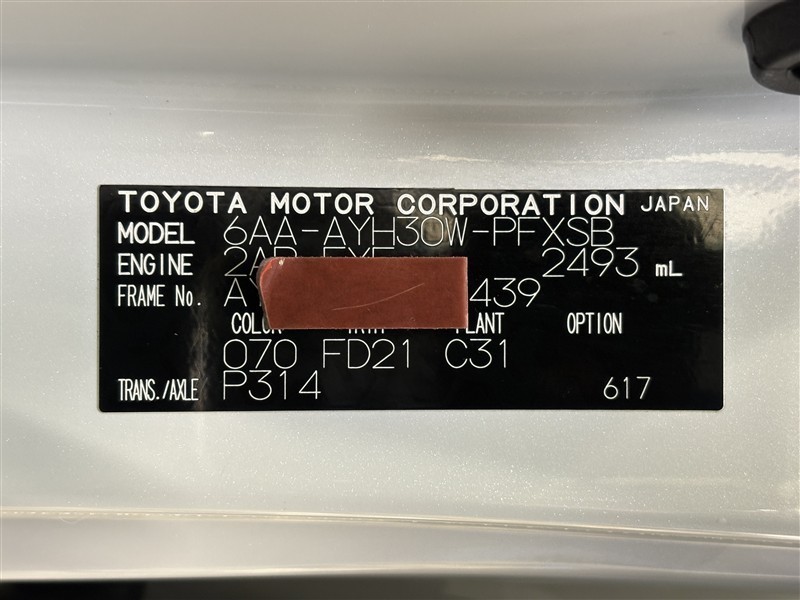 コーションプレートです。フレームナンバーやカラーコードなどが記載されています。