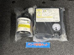 タイヤがパンクした時の応急修理キットです。スペアタイヤがないことにより軽量化でき環境にもいいです。