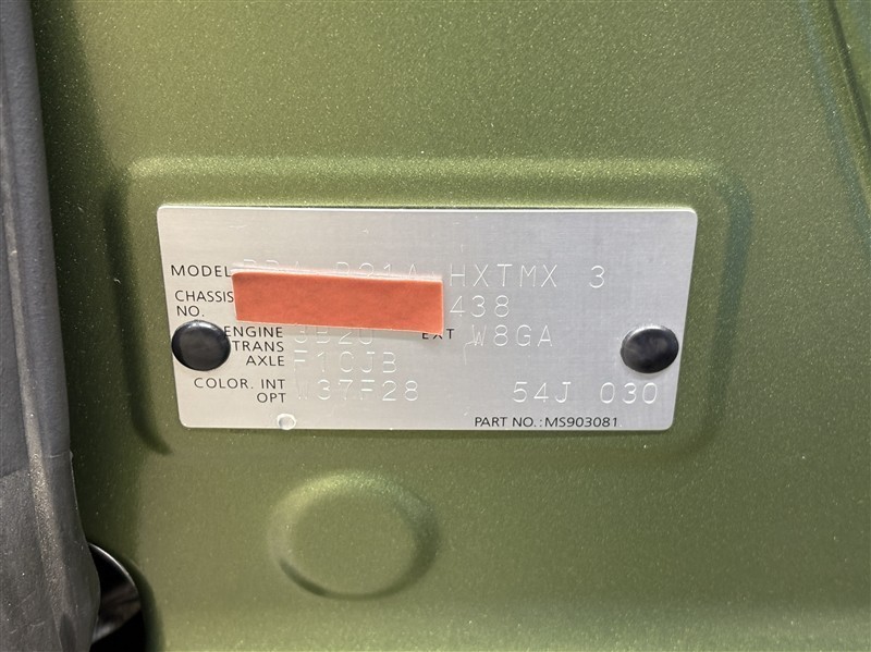 コーションプレートです。フレームナンバーやカラーコードなどが記載されています。