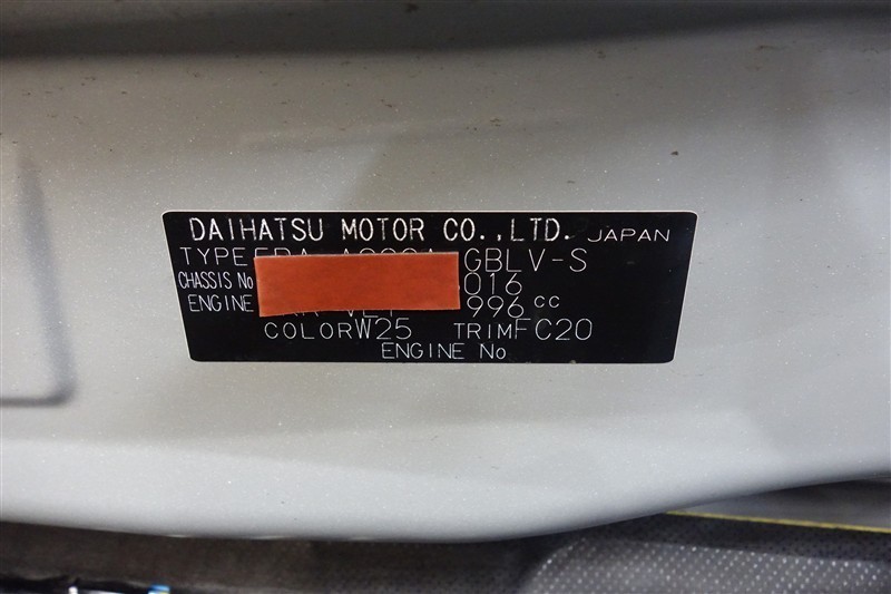 コーションプレートです。フレームナンバーやカラーコードなどが記載されています。
