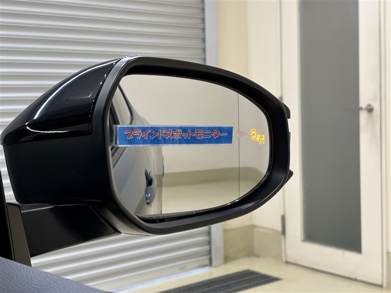 <ブラインドスポットモニター>死角になりやすい斜め後ろの車両や障害物を検知してドアミラー内のランプをオレンジに点灯し知らせてくれます。車線変更や駐車時に安心ですね♪