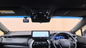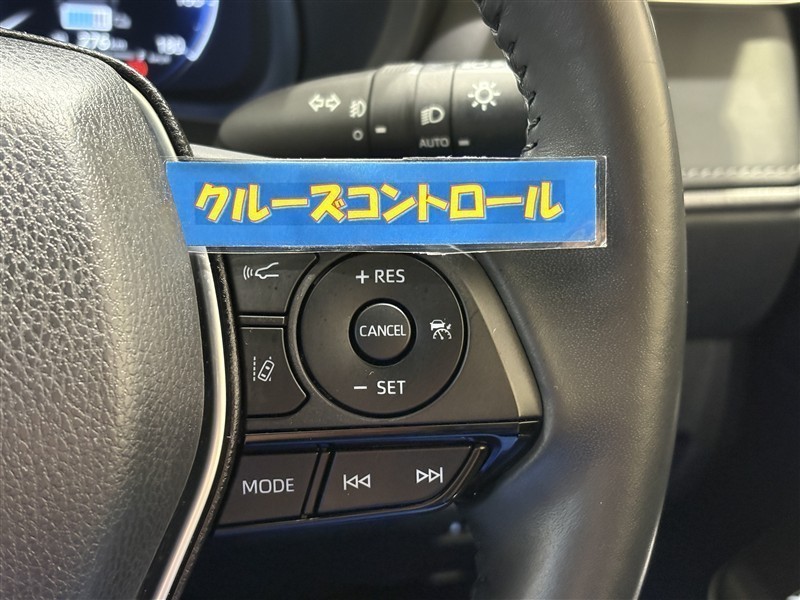 <ヘッドアップディスプレイ>運転席側フロントガラス下側にスピードなどを映し出し視線の移動を少なくします。