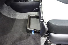 助手席シート下の収納スペースです。普段使わないものを収納しておけます。