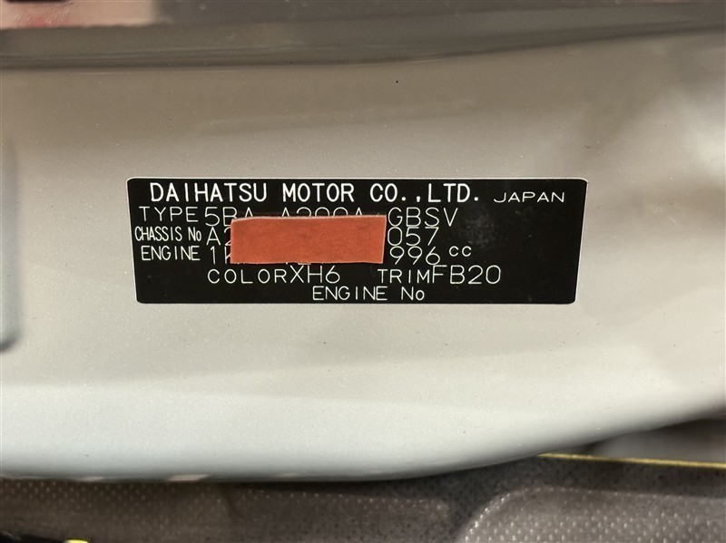 コーションプレートです。フレームナンバーやカラーコードなどが記載されています。