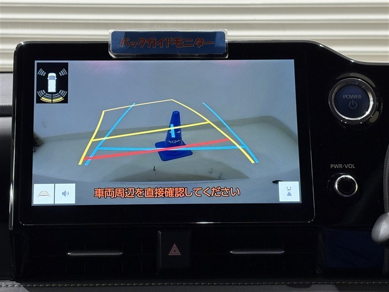 <バックガイドモニター>大画面なので大きく映り、ハンドル操作に連動した予想進路図を確認しながら、より安全に駐車できます!補助装置になりますので、目視でもご確認ください。