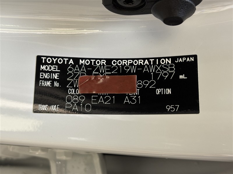 コーションプレートです。フレームナンバーやカラーコードなどが記載されています。
