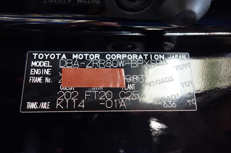コーションプレートです。フレームナンバーやカラーコードなどが記載されています。