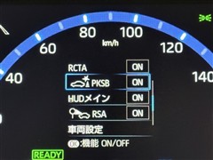 <ヘッドアップディスプレイ>運転席側フロントガラス下側にスピードなどを映し出し視線の移動を少なくします。