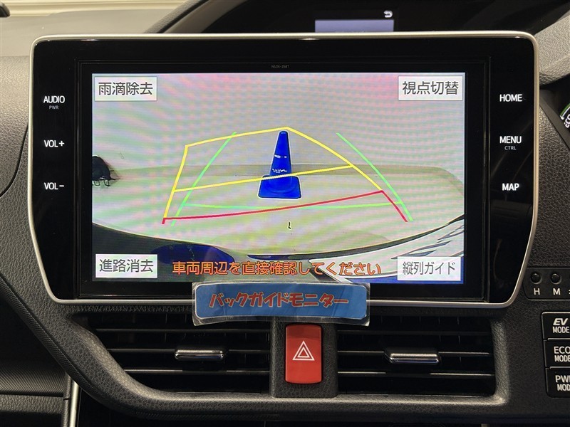<バックガイドモニター>大画面なので大きく映り、ハンドル操作に連動した予想進路図を確認しながら、より安全に駐車できます!補助装置になりますので、目視でもご確認ください。