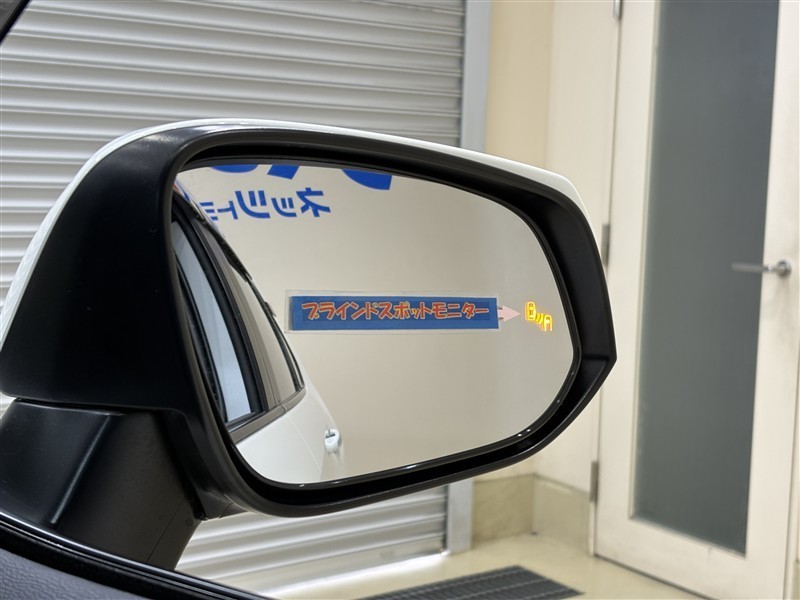<ブラインドスポットモニター>死角になりやすい斜め後ろの車両や障害物を検知してドアミラー内のランプをオレンジに点灯し知らせてくれます。車線変更や駐車時に安心ですね♪