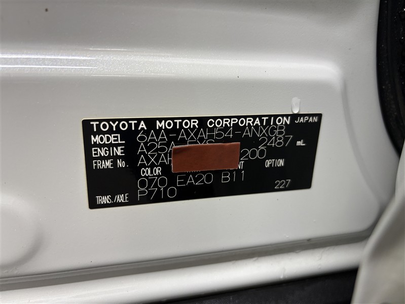 コーションプレートです。フレームナンバーやカラーコードなどが記載されています。