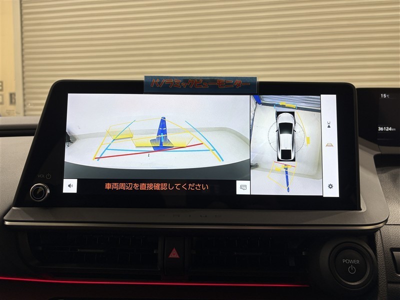<パノラミックビューモニター>真上から車を見ているように表示されるので、運転席から見えないところも映し出されて確認でき、より安全に駐車できます!バックが苦手な人でも安心ですね♪目視での確認も忘れずに。