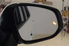 車線変更時などに、ドアミラーでは確認しにくい後側方エリア(ブラインドスポット)に存在する車両をレーダーで検知。警告サインをドアミラー等に表示することで、運転者に注意喚起する機能。