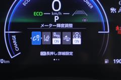 ハイブリッドならではの装備。EVスイッチを押すとモーターのみの走行が出来ますよ。 モーターで駆動するのでガソリンエンジンと比べると静かなので、早朝や深夜など大きな音を出さずに運転できます。